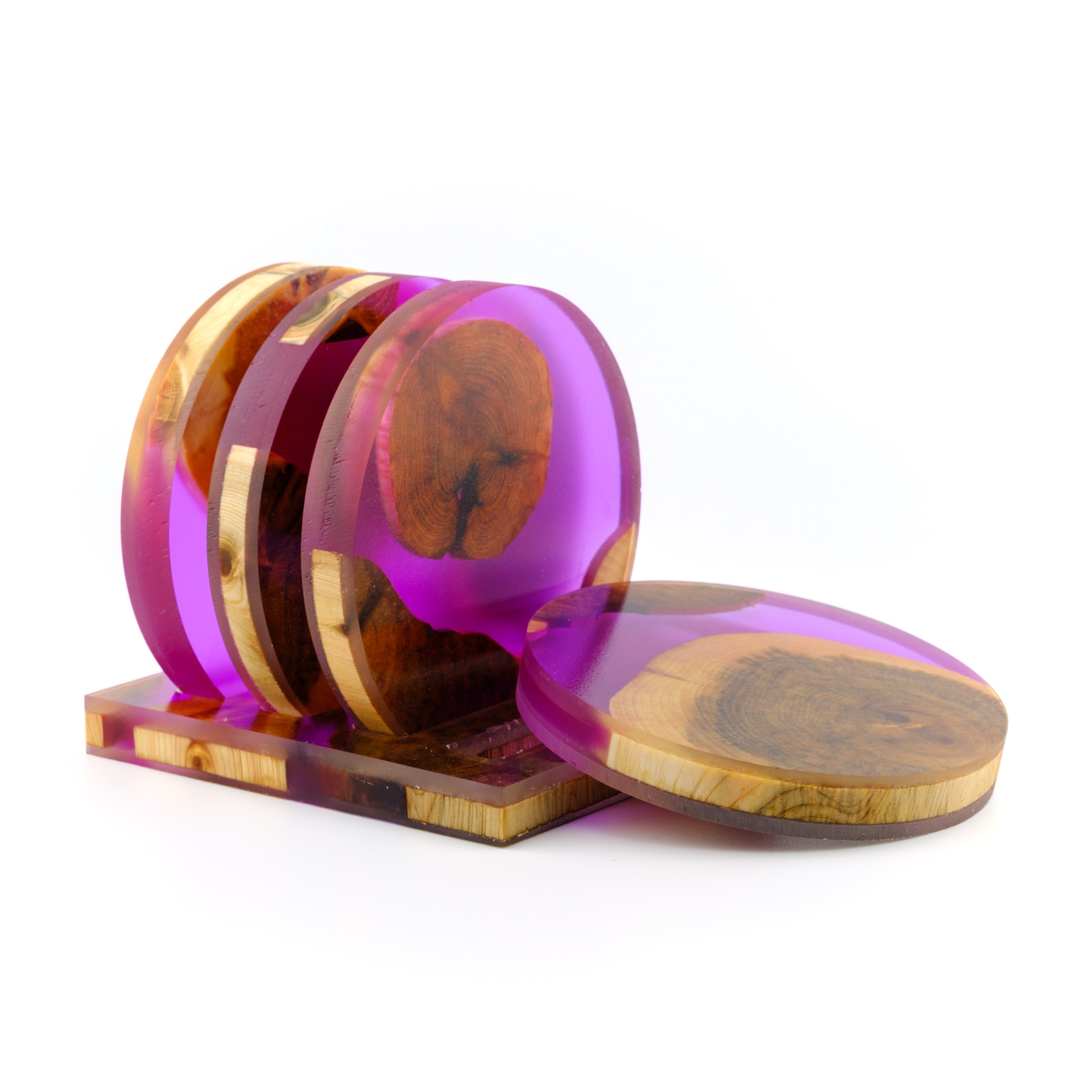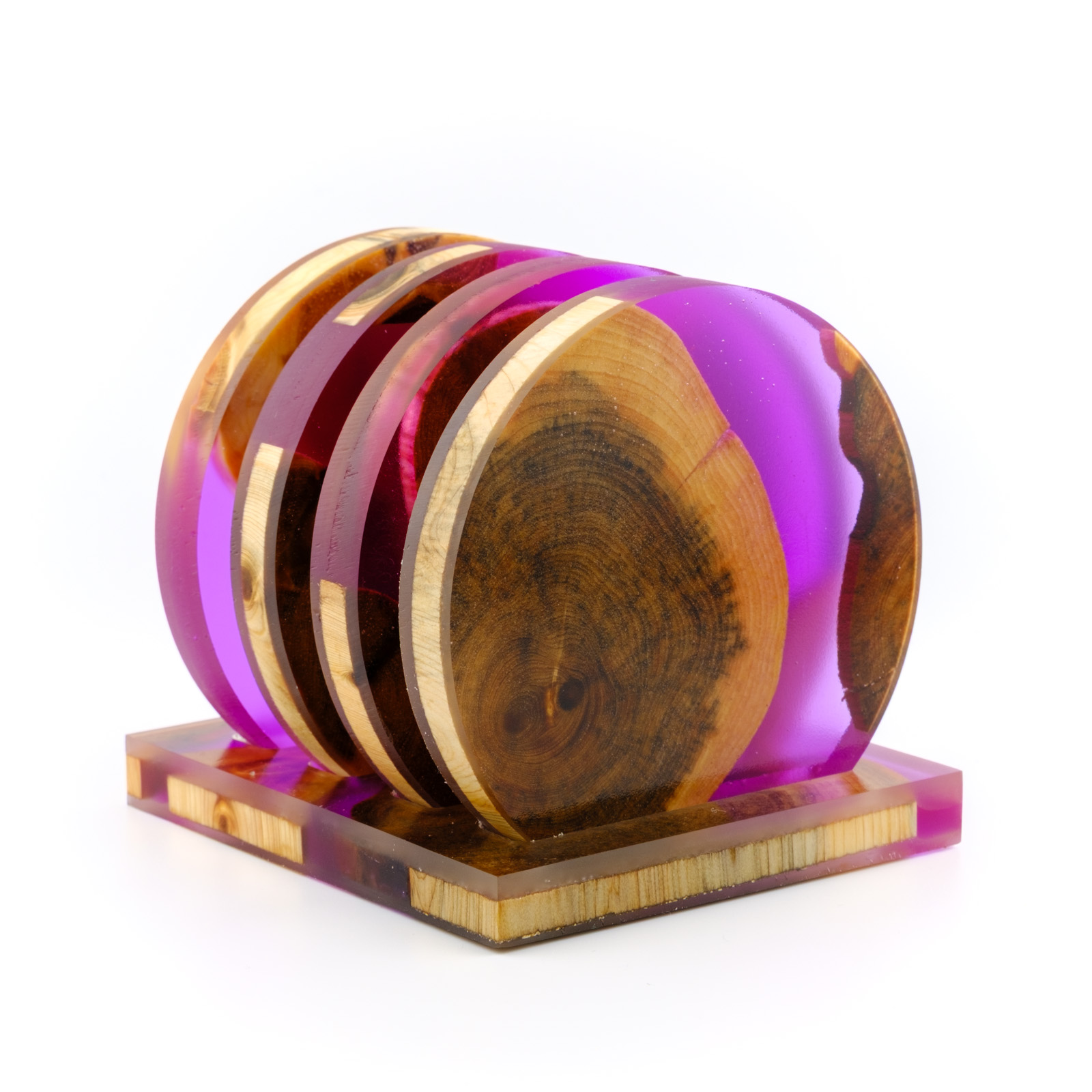 Joogialuste komplekt mis on tehtud käsitööna kasutades Eestimaist kadakat ja kõrgkvaliteedilist DIPON epoksiidi. Kaua kestev ja hõlpsasti puhastatav toode, mis toob kõneainet iga laua peale.