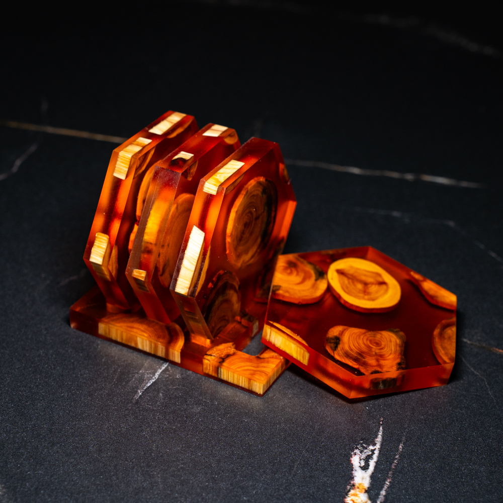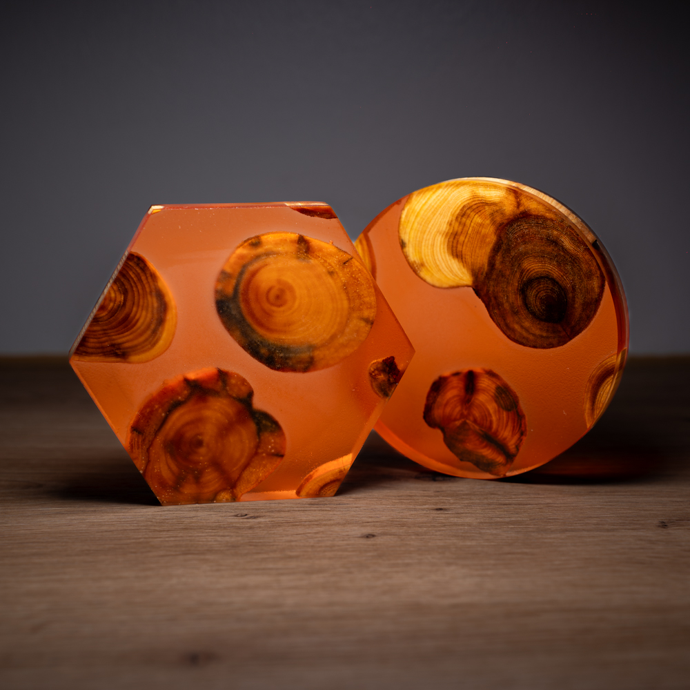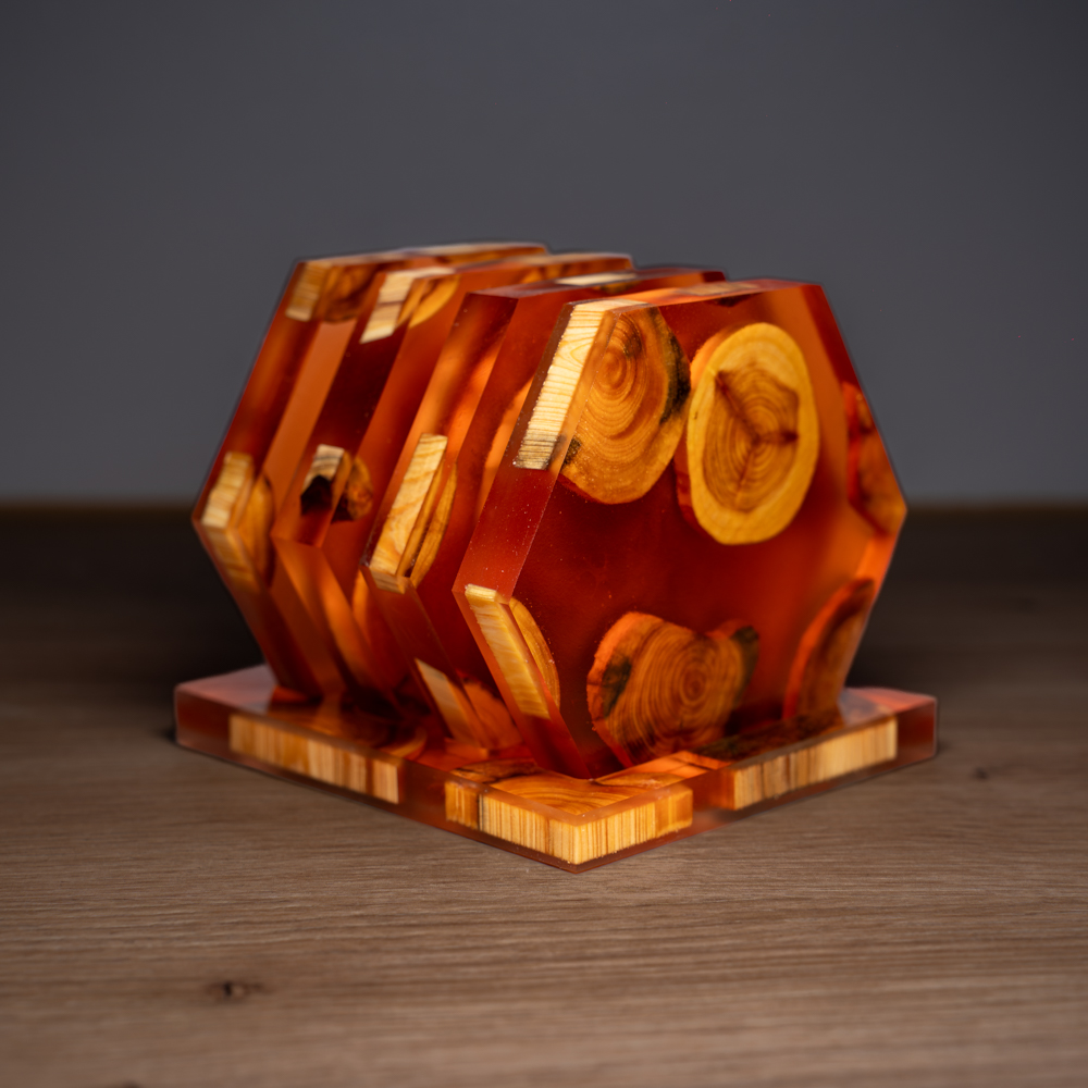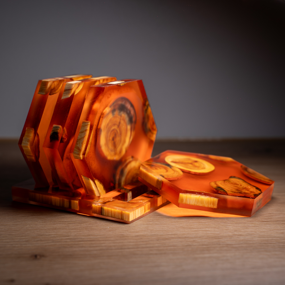 Joogialuste komplekt mis on tehtud käsitööna kasutades Eestimaist kadakat ja kõrgkvaliteedilist DIPON epoksiidi. Kaua kestev ja hõlpsasti puhastatav toode, mis toob kõneainet iga laua peale.