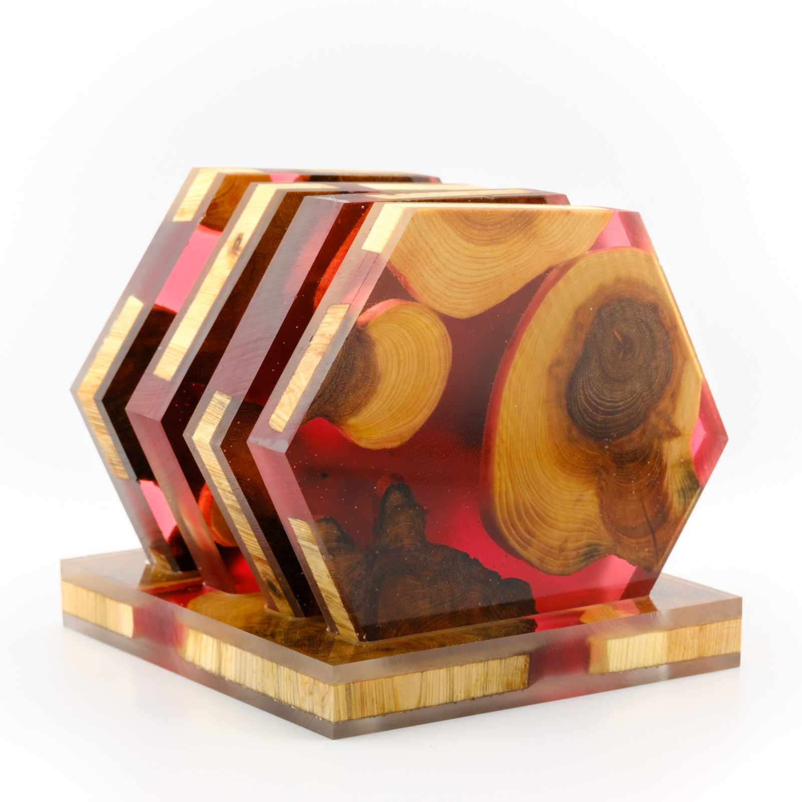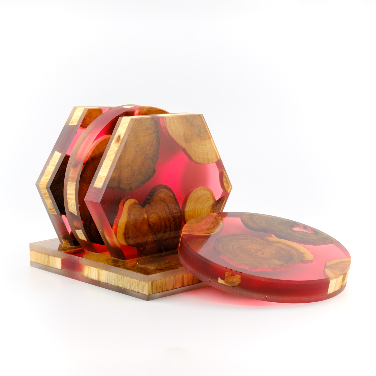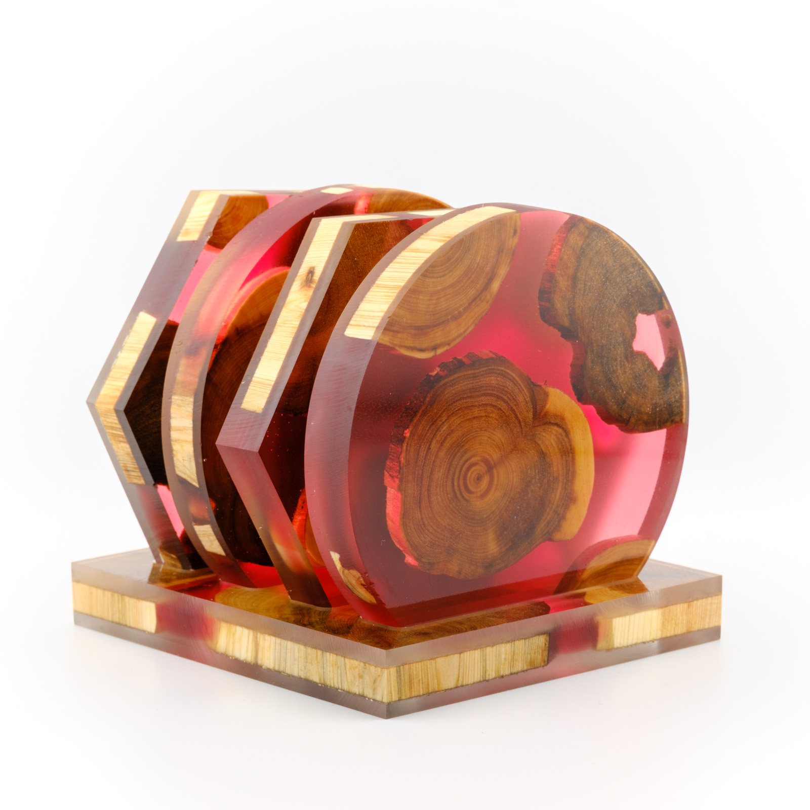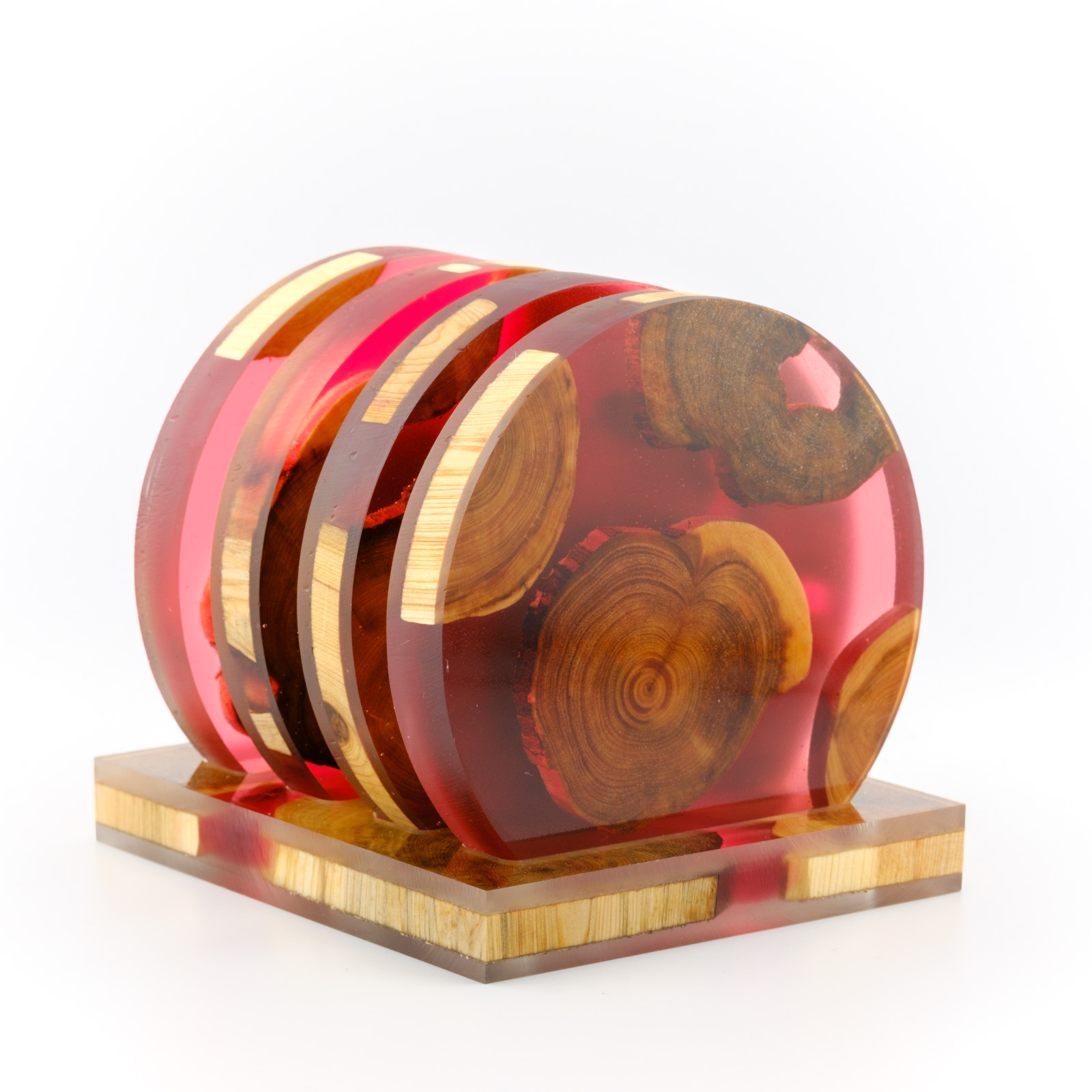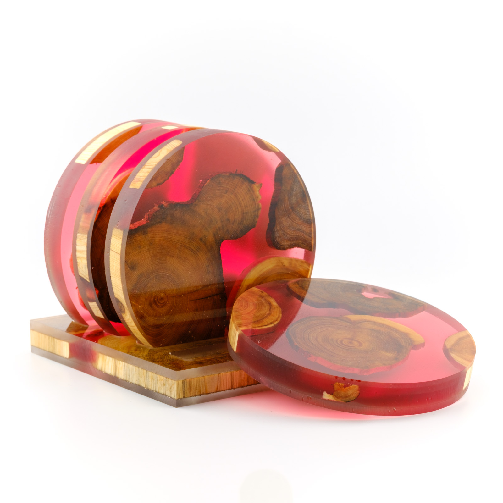 Joogialuste komplekt mis on tehtud käsitööna kasutades Eestimaist kadakat ja kõrgkvaliteedilist DIPON epoksiidi. Kaua kestev ja hõlpsasti puhastatav toode, mis toob kõneainet iga laua peale.