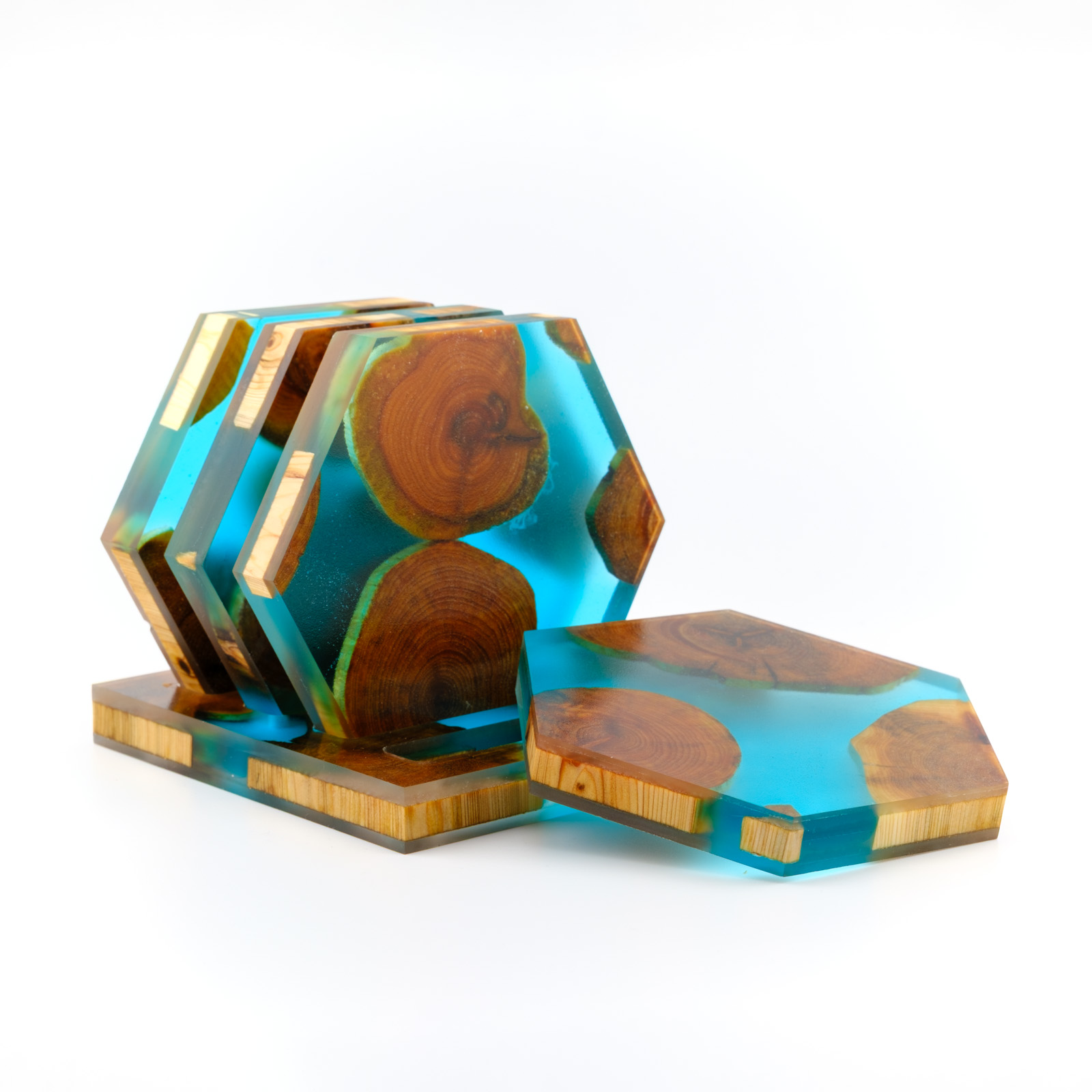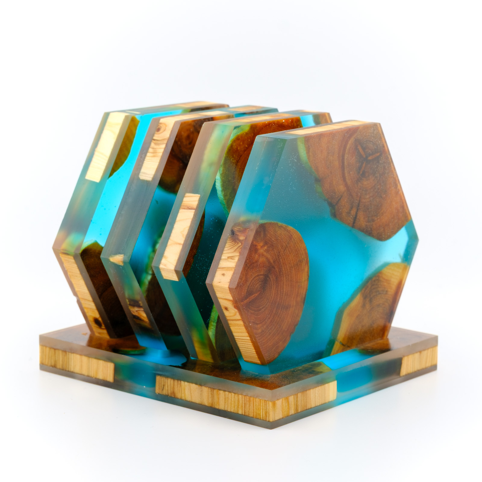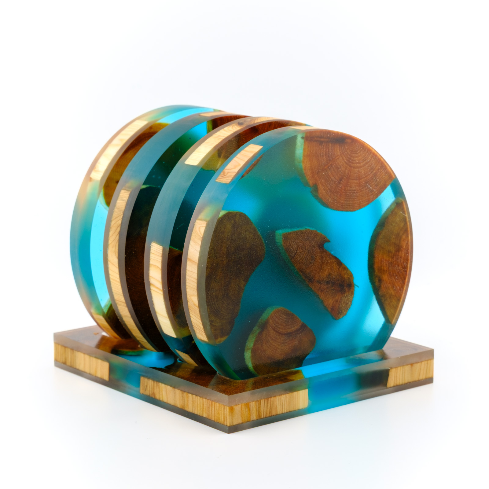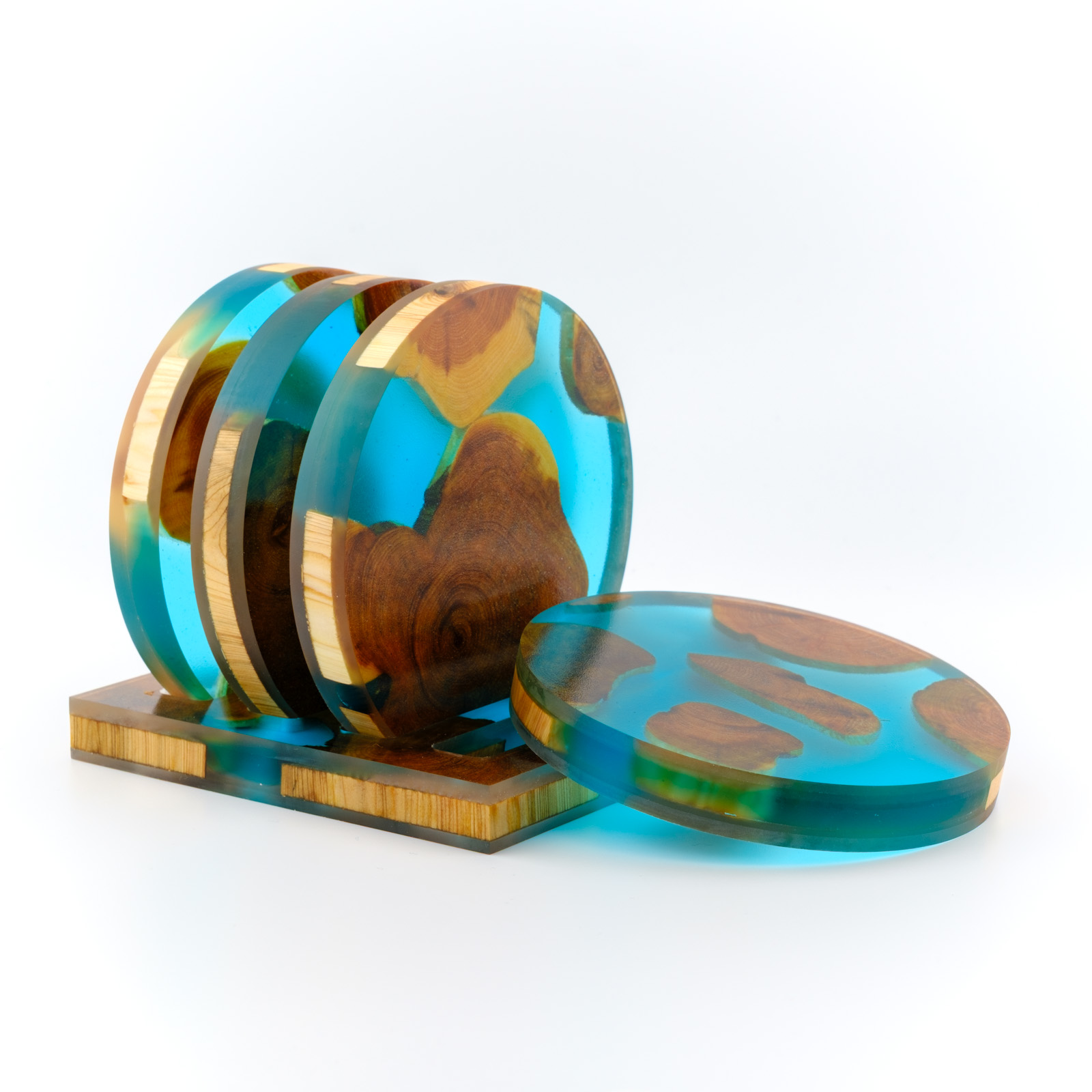 Joogialuste komplekt mis on tehtud käsitööna kasutades Eestimaist kadakat ja kõrgkvaliteedilist DIPON epoksiidi. Kaua kestev ja hõlpsasti puhastatav toode, mis toob kõneainet iga laua peale.