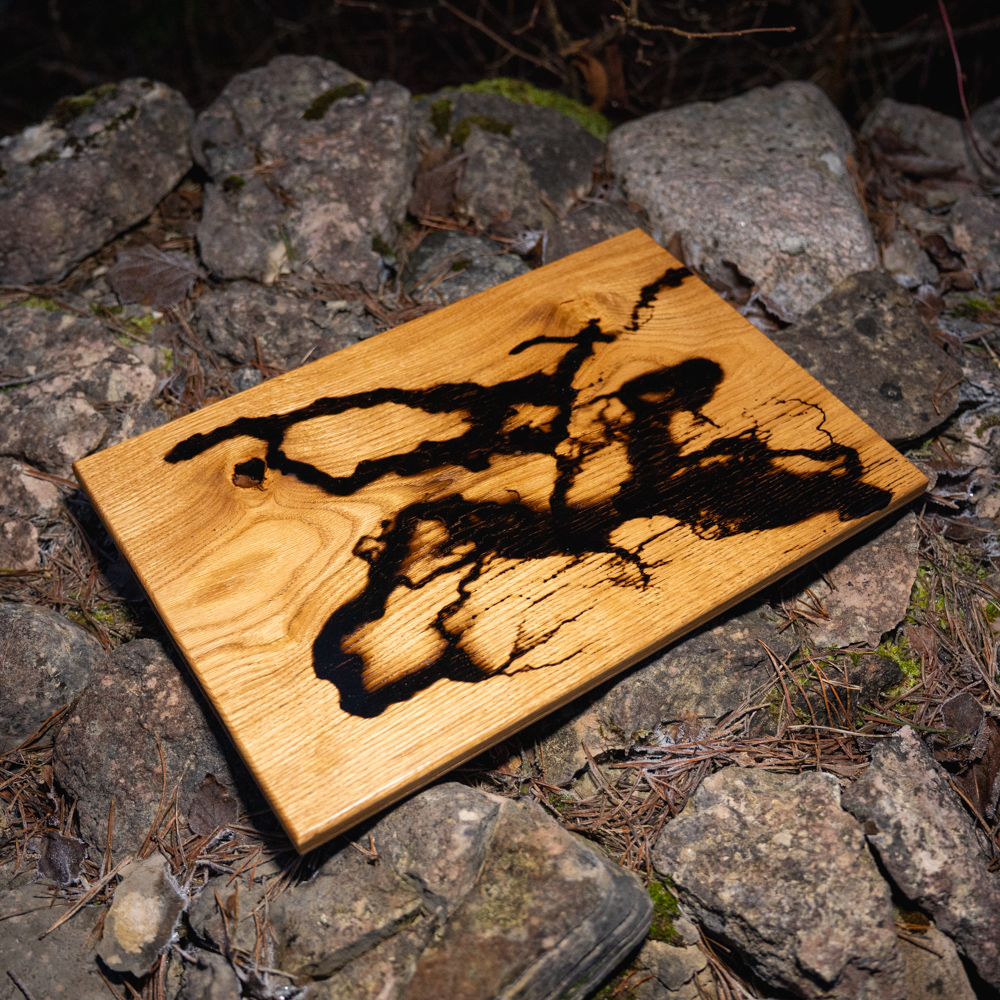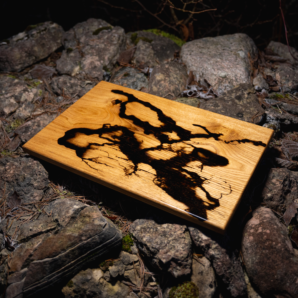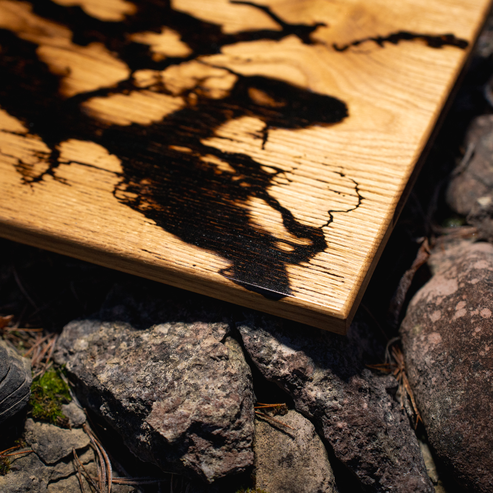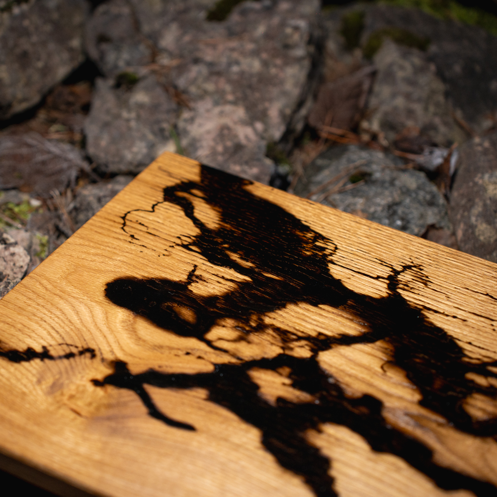 Käsitööna valminud kahepoolne serveerimisalus, mis on ühtlasi ka lõikelaud, on valmistatud vastupidavast tammepuust ning kõrgekvaliteedilisest DIPON epoksiidist. Toode on disainitud kahepoolseks, et säilitada epoksiidi ilu võimalikult pikalt ja eraldada serveerimis- ning lõikepind praktiliselt.
