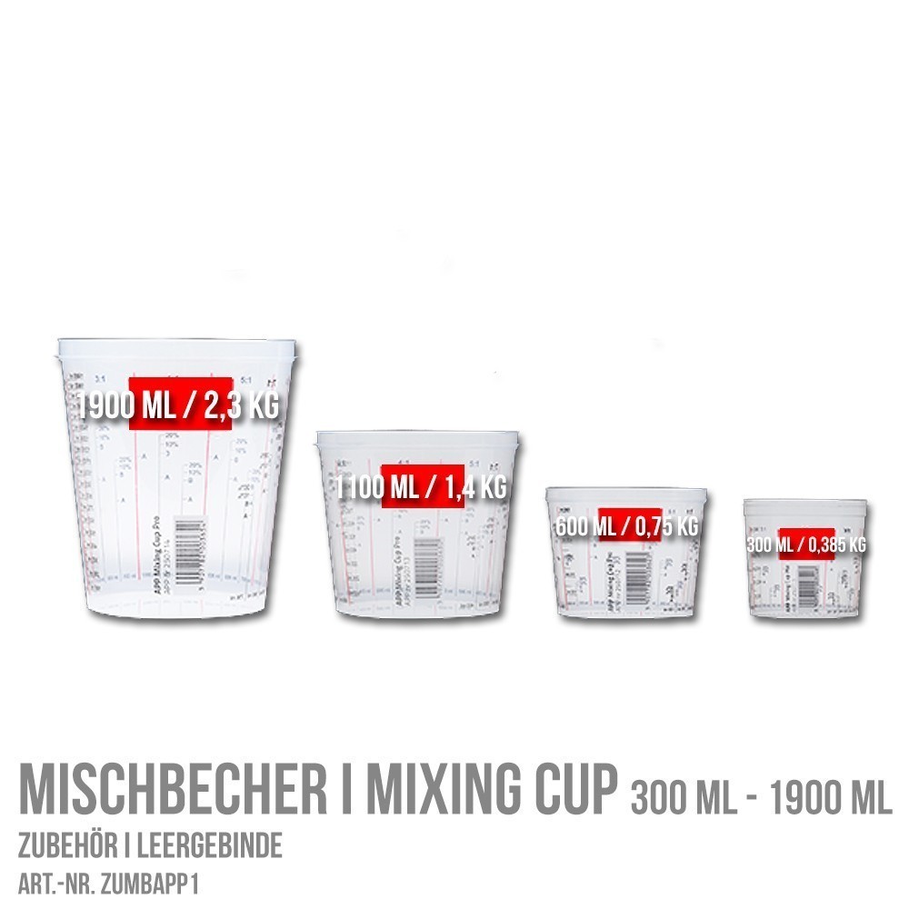 Professionaalne segamistops vaikude, värvide ja lakkide jaoks.Segamistopsid on valmistatud vastupidavast plastist, mis talub värvides sisalduvaid kemikaale. Täpne graafiline skaala anuma seinal võimaldab hõlpsalt doseerida õige koguse vastavalt tootja määratud segamissuhetele. Kergesti loetav sisemine skaala muudab õige koguse doseerimise ja segamise veelgi lihtsamaks.
