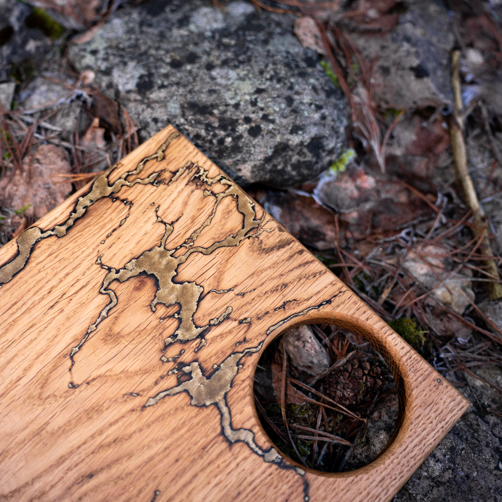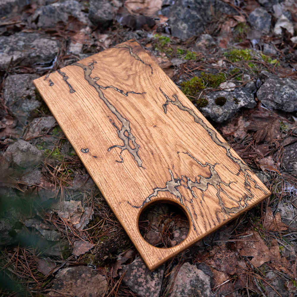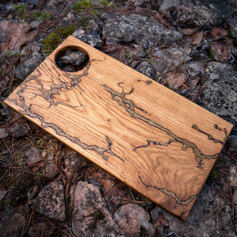 Käsitööna valminud serveerimisalus dipitopsi hoidjaga, valmistatud vastupidavast tammepuust ja kvaliteetsest DIPON epoksiidist. Food safe, loodusliku linaõliga viimistletud ning praktiline lahendus stiilseks serveerimiseks.
